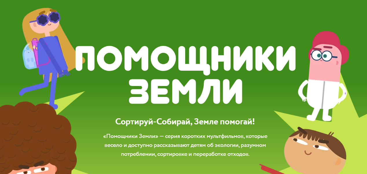 «Помощники Земли» — серия коротких мультфильмов, которые весело и доступно рассказывают детям об экологии, разумном потреблении, сортировке и переработке отходов.